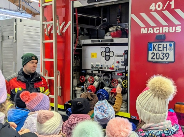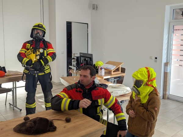 Besonders spannend war es, durch eine Wärmebildkamera zu schauen und so „unsichtbare“ Hitzequellen zu erkennen. Natürlich durfte das Probesitzen im Feuerwehrauto nicht fehlen – wir konnten sehen, welche vielfältigen Geräte zur Rettung von Menschen und Tieren mitgeführt werden.