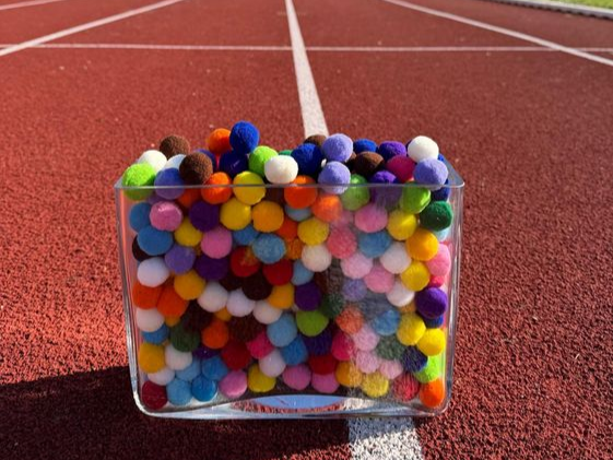 Nach einem gemeinsamen Aufwärmen mit dem Lied „Theo, Theo ist fit“ unter Anleitung der SVE Kinder ging es los. Mit viel Motivation und guter Stimmung liefen oder gingen alle Teilnehmerinnen und Teilnehmer 15 Minuten lang. Für jede geschaffte Runde durfte ein Pompon gesammelt werden. Am Ende kam dabei ein ganzes Glas voller Pompons zusammen – ein tolles Zeichen für den starken Einsatz aller Kinder.